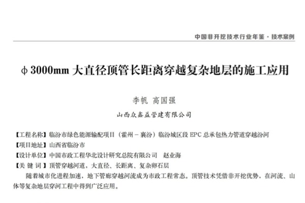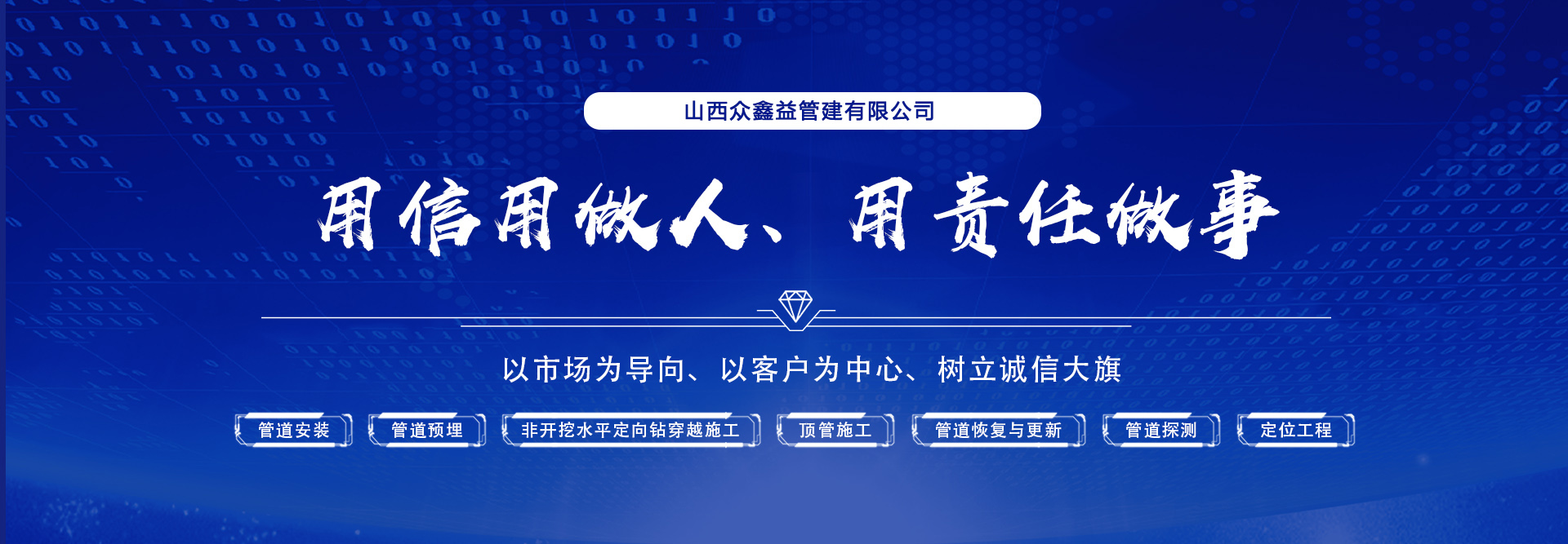 山西眾鑫益管建有限公司成立于2013年8月,注冊(cè)資金5000萬元人民幣。是一家主要致力于管道安裝、管道預(yù)埋,非開挖水平定向鉆進(jìn)穿越施工,管道修復(fù)與更新、管道探測(cè)、管道定位,建筑工程機(jī)械與設(shè)備租賃的企業(yè)。